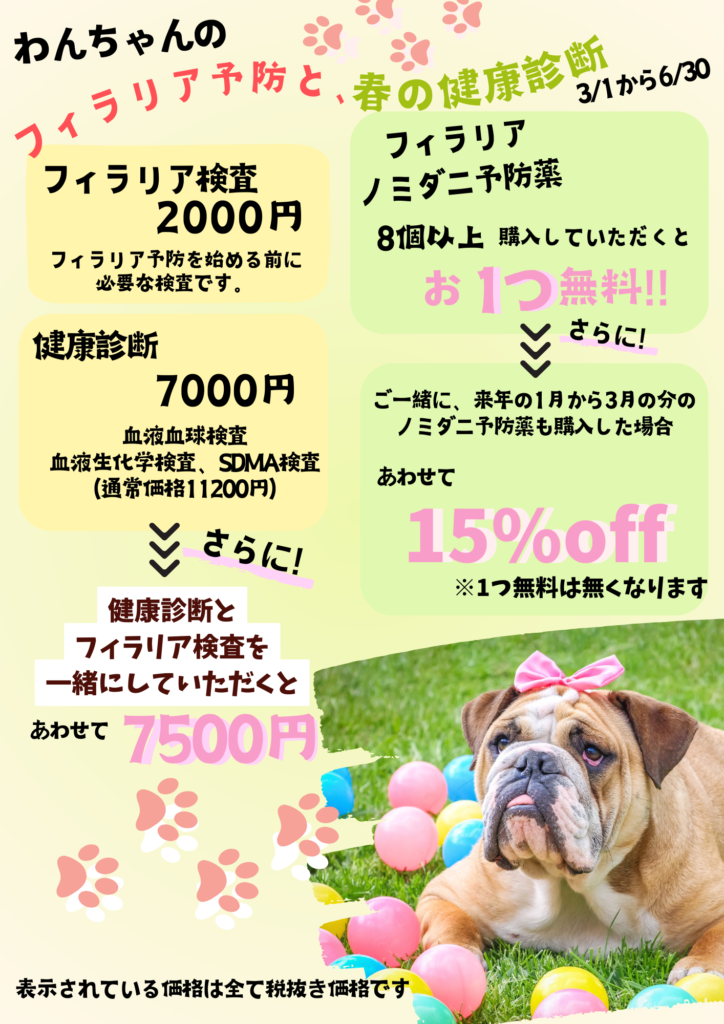 今年も、フィラリア検査と一緒に健康診断を受けていただくと